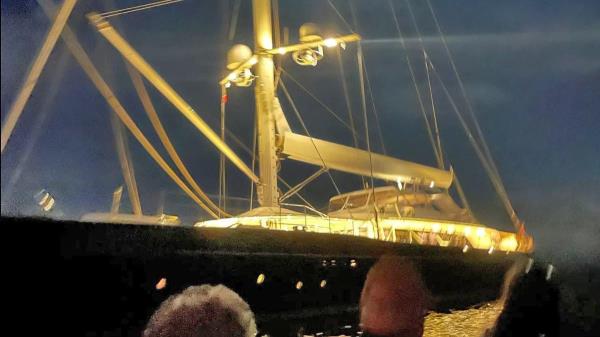 据报道,风暴来袭时,罗伯特·贝登·鲍威尔爵士号停泊在距贝叶斯仅100米的地方,但它经受住了恶劣天气的考验。