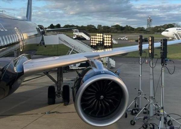 调查人员认为,在从伦敦斯坦斯特德机场起飞的一架空客A321neo飞机上,来自胶片泛光灯的强烈热量集中在飞机的外部,导致飞机的窗户受到热损伤,之后飞机的一些窗户玻璃从飞机上脱落。