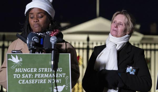 美国国会议员和宗教领袖目前在白宫外绝食,要求乔·拜登总统于2023年11月29日星期三呼吁在加沙永久停火。(美联社)