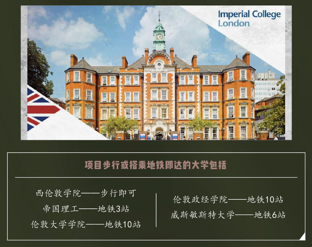 此外,莱克辛顿公馆临近各大世界名校。帝国理工(IC)步行即可到达,伦敦大学学院(UCL)以及伦敦政经学院(LSE)等世界名校,乘坐地铁10站也可达到。