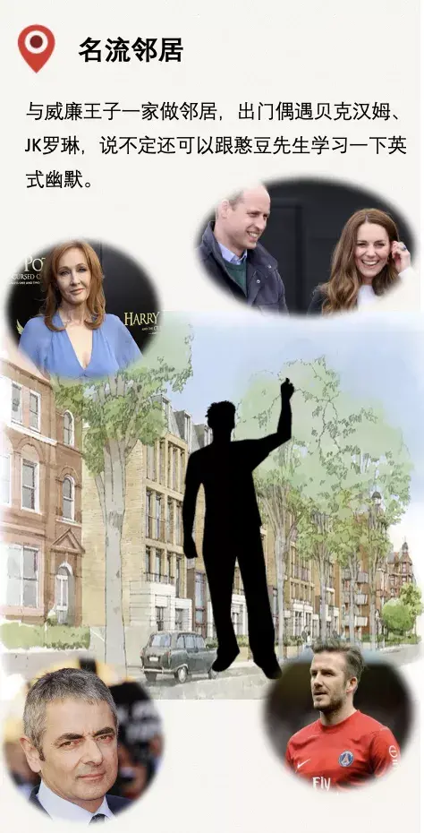 还有,《哈利波特》的作者JK罗琳、憨豆先生等众多名人都在此居住,肯辛顿-切尔西区的豪华生活吸引着世界名流。